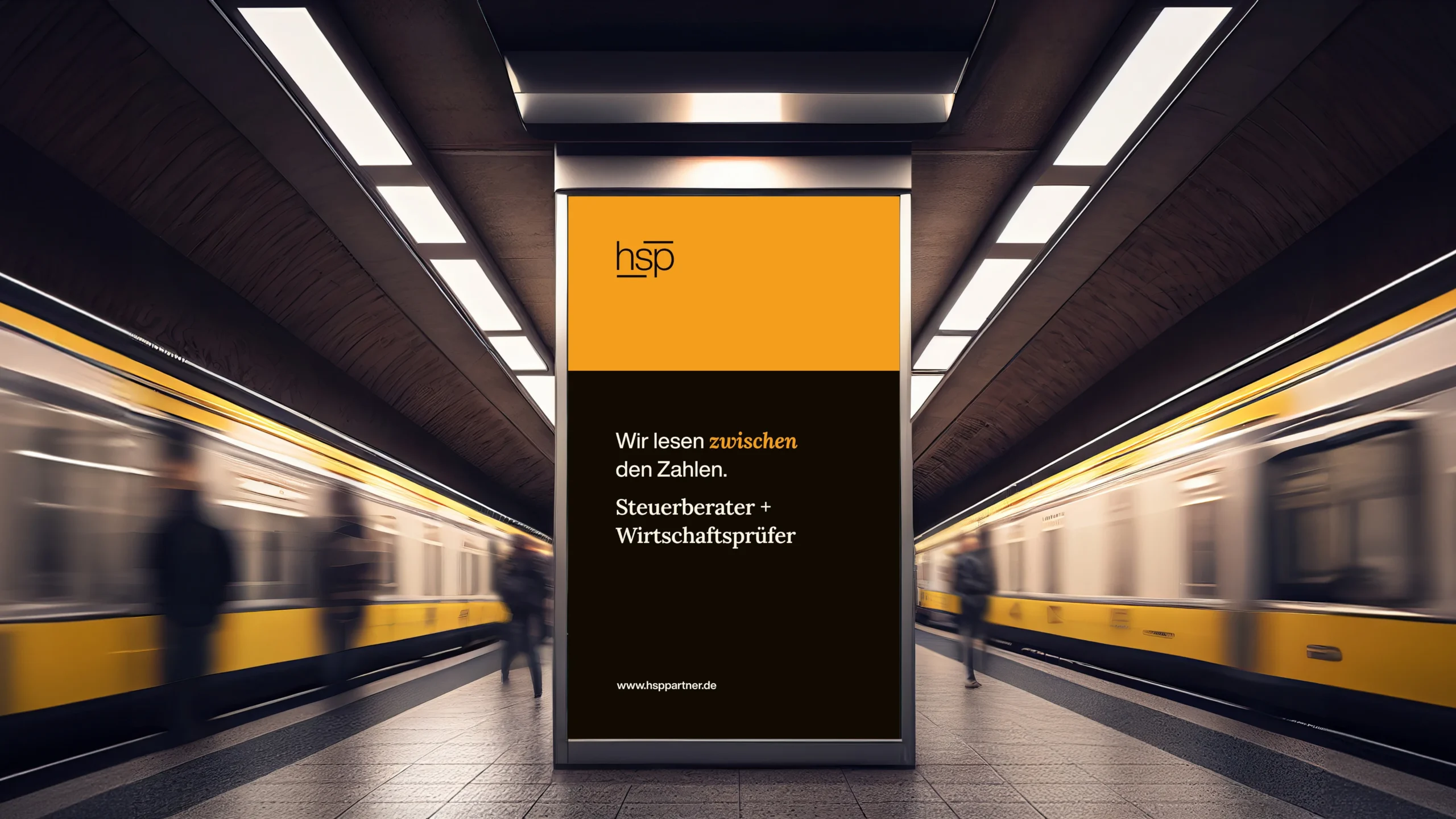 Das Konzept „zwischen den Zahlen zu lesen“, das den Beratungsansatz von hsp prägt, wurde gezielt in das Design integriert. Die beiden horizontalen Linien ober- und unterhalb der Wortmarke symbolisieren diese Idee und lenken den Blick auf das, was dazwischen steht: hsp. Das zurückhaltende Corporate Design schafft eine zeitlose und klare Markenidentität.