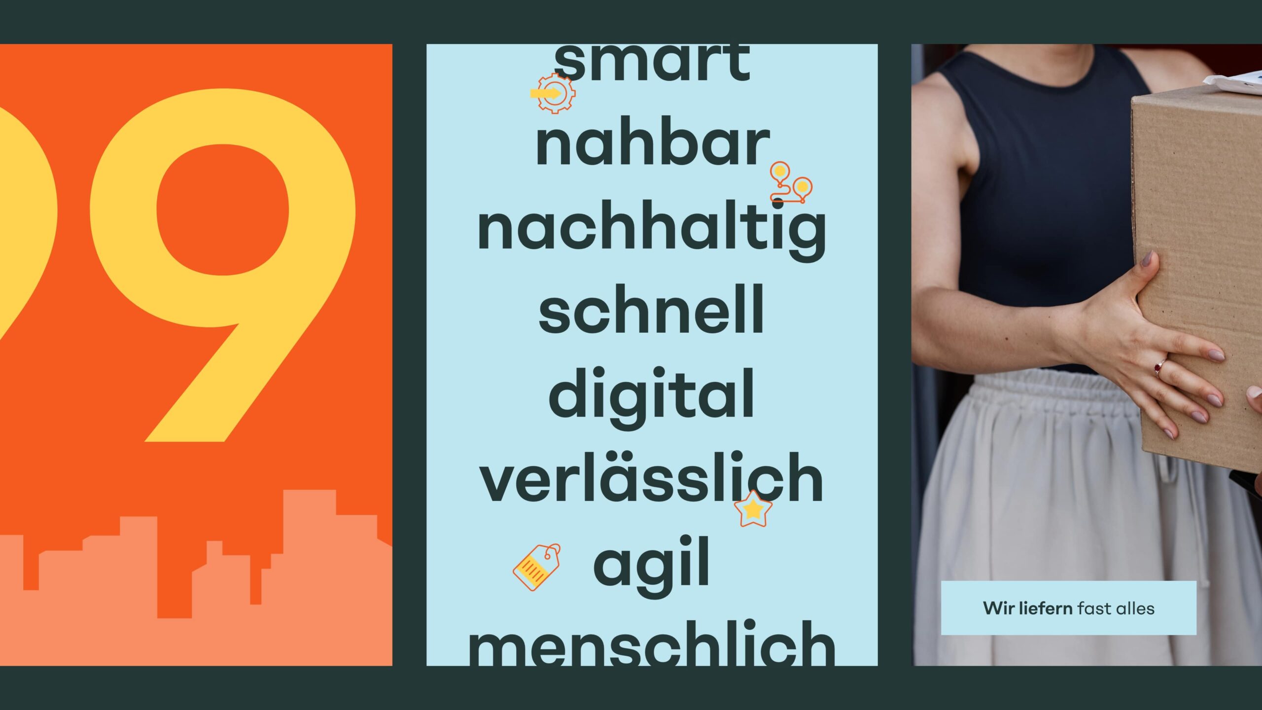 Die Bildwelt orientiert sich strikt am realen Urban‑Kontext: E‑Cargobikes auf Kopfsteinpflaster, Lieferant:innen vor Haustüren, Momentaufnahmen von Zustellungen mit deutlich spürbarer Nachhaltigkeits-DNA . Die Bildsprache ist authentisch, nahbar, lösungsorientiert – ohne große Inszenierung und mit dem Alltag als Fokus.