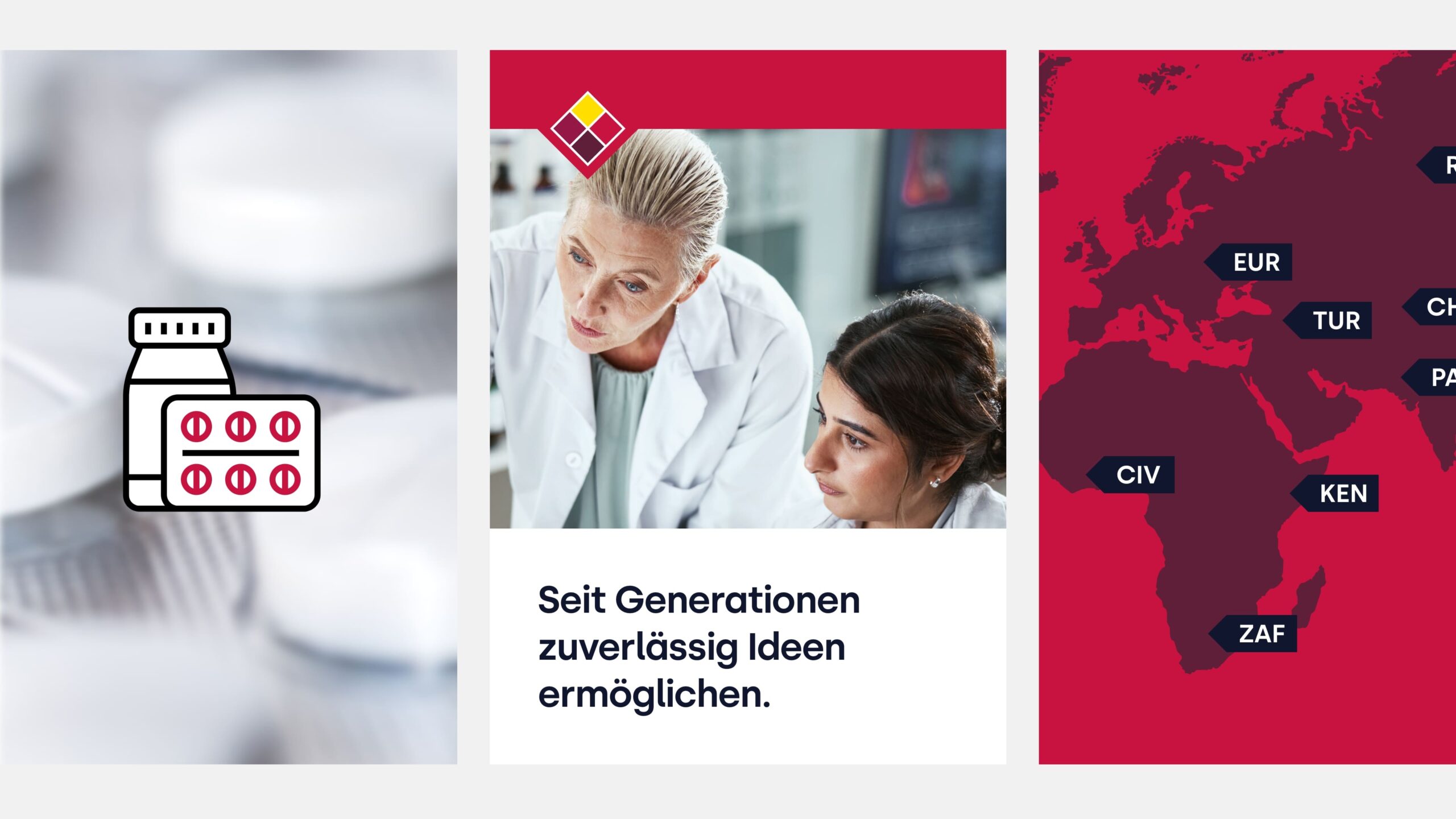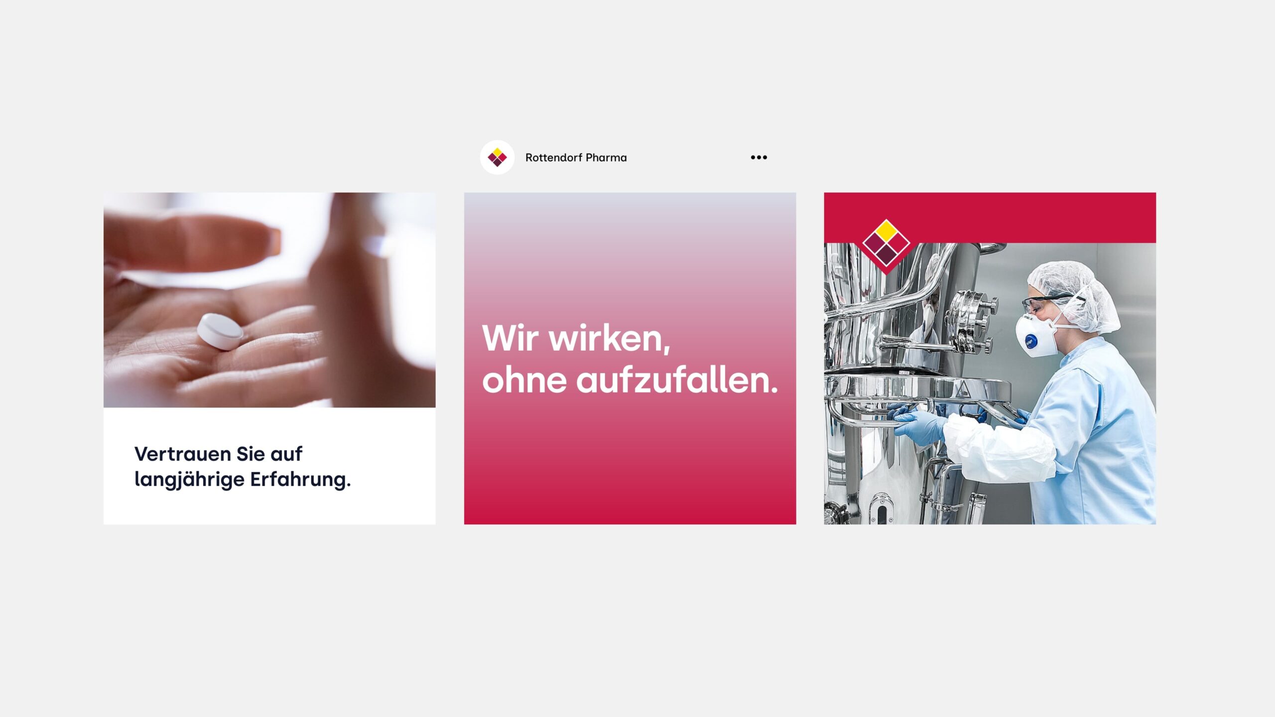 „Für die neue Marke von Rottendorf Pharma haben wir ein Designsystem entwickelt, das Tradition und modernen Anspruch an Gestaltung vereint. Der Kern der Marke findet sich im ikonischen Element – dem Logo – in Form der neu gestalteten Raute wieder.“