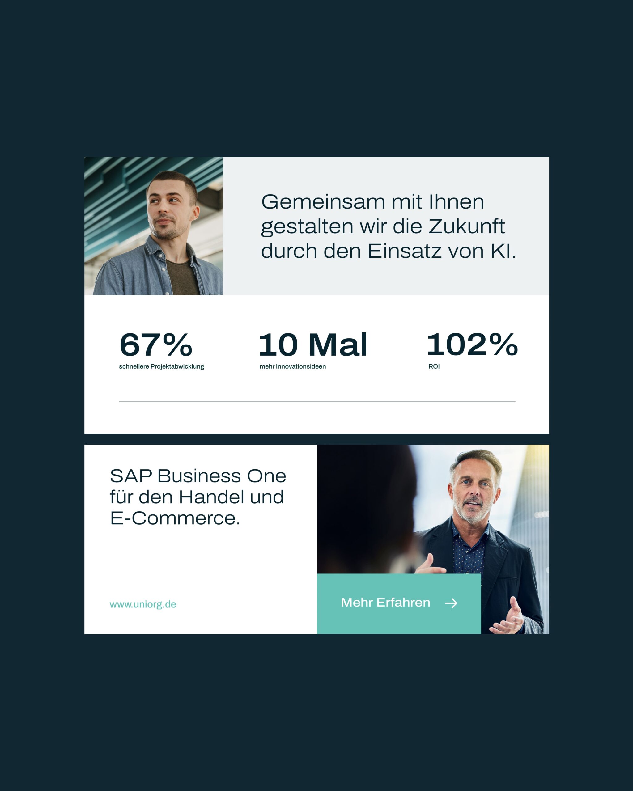 Die neue Markenpräsenz verkörpert, wofür UNIORG steht: jahrelange Expertise, ehrliche Leidenschaft, kundenorientierte Verlässlichkeit und eine klare Zukunftsvision – sichtbar in einem reduzierten Farbschema, das Seriosität vermittelt, einer modernen Typografie für technologische Präzision und einer dynamischen Bildwelt, die Fortschritt und partnerschaftliche Expertise visuell erlebbar macht.